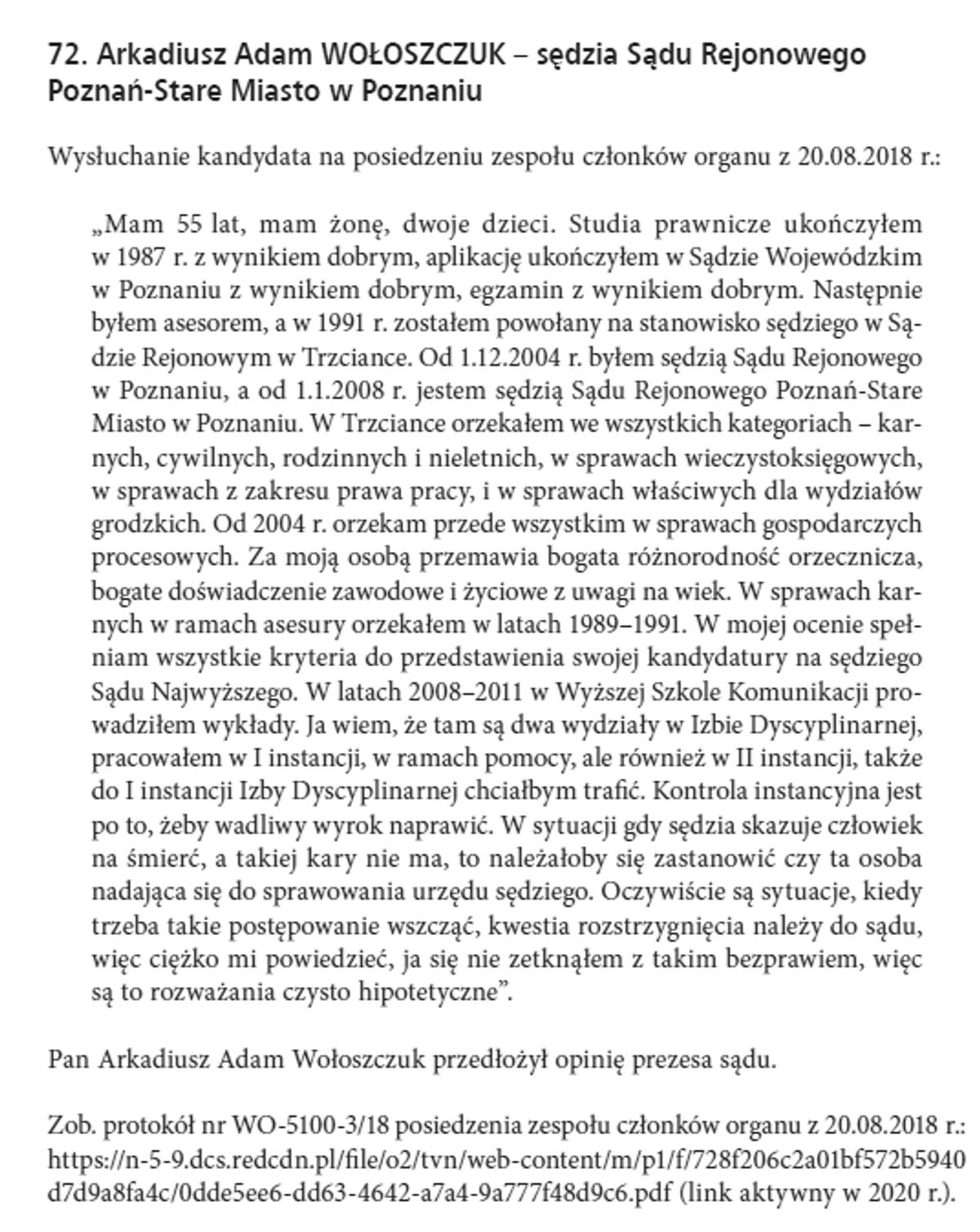 Kandydował do Izby Dyscyplinarnej przy Sądzie Najwyższym (por: Wymiar sprawiedliwości pod presją. Represje jako metoda walki o przejęcie kontroli nad władzą sądowniczą i prokuraturą w Polsce w latach 2015-2023.) protokół wysłuchania kandydata:
