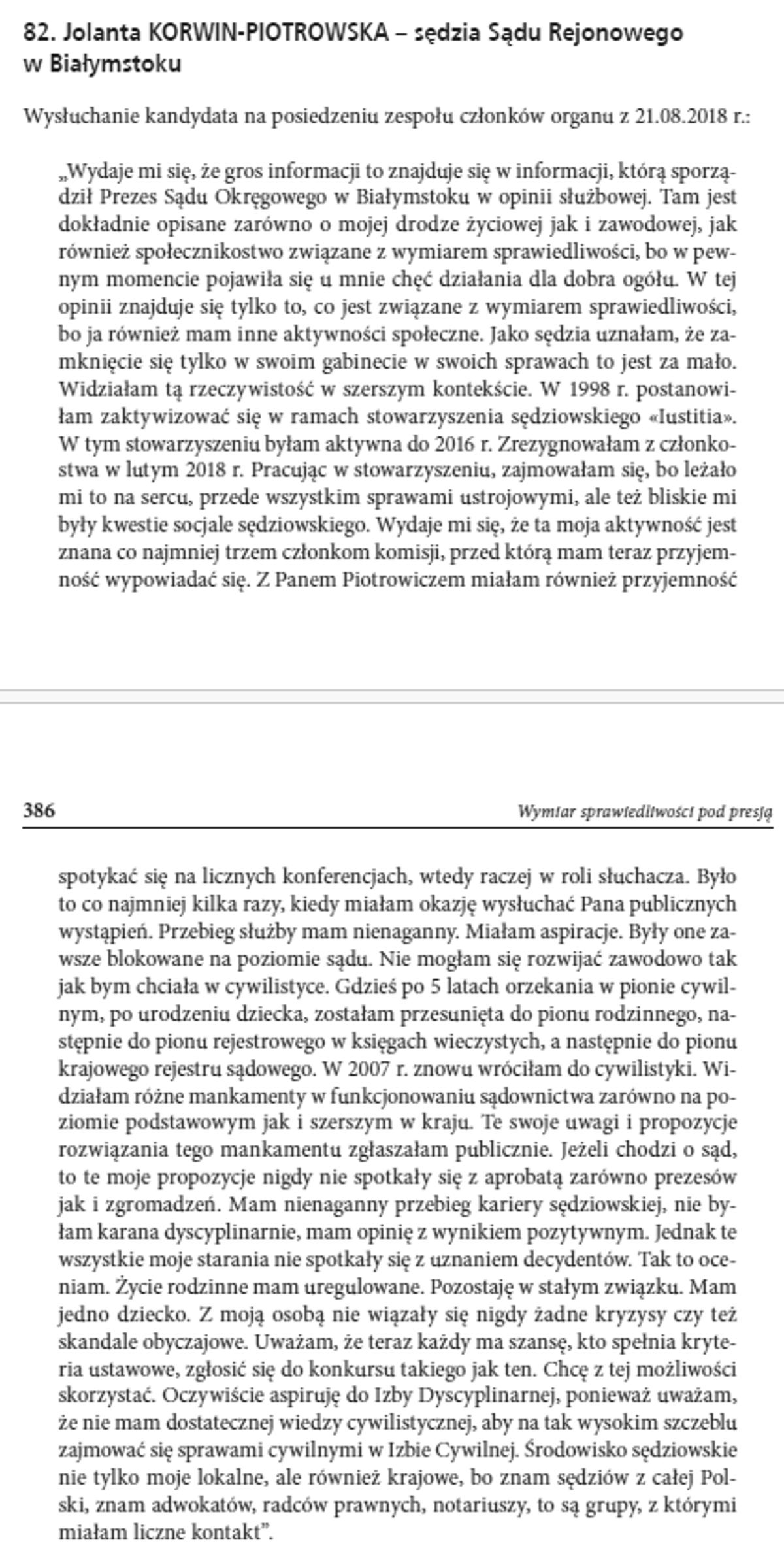 powołana na stanowisko Prezesa Sądu Okręgowego w Białymstoku w 2017 r. w miejsce Prezesa odwołanego przed upływem kadencji;