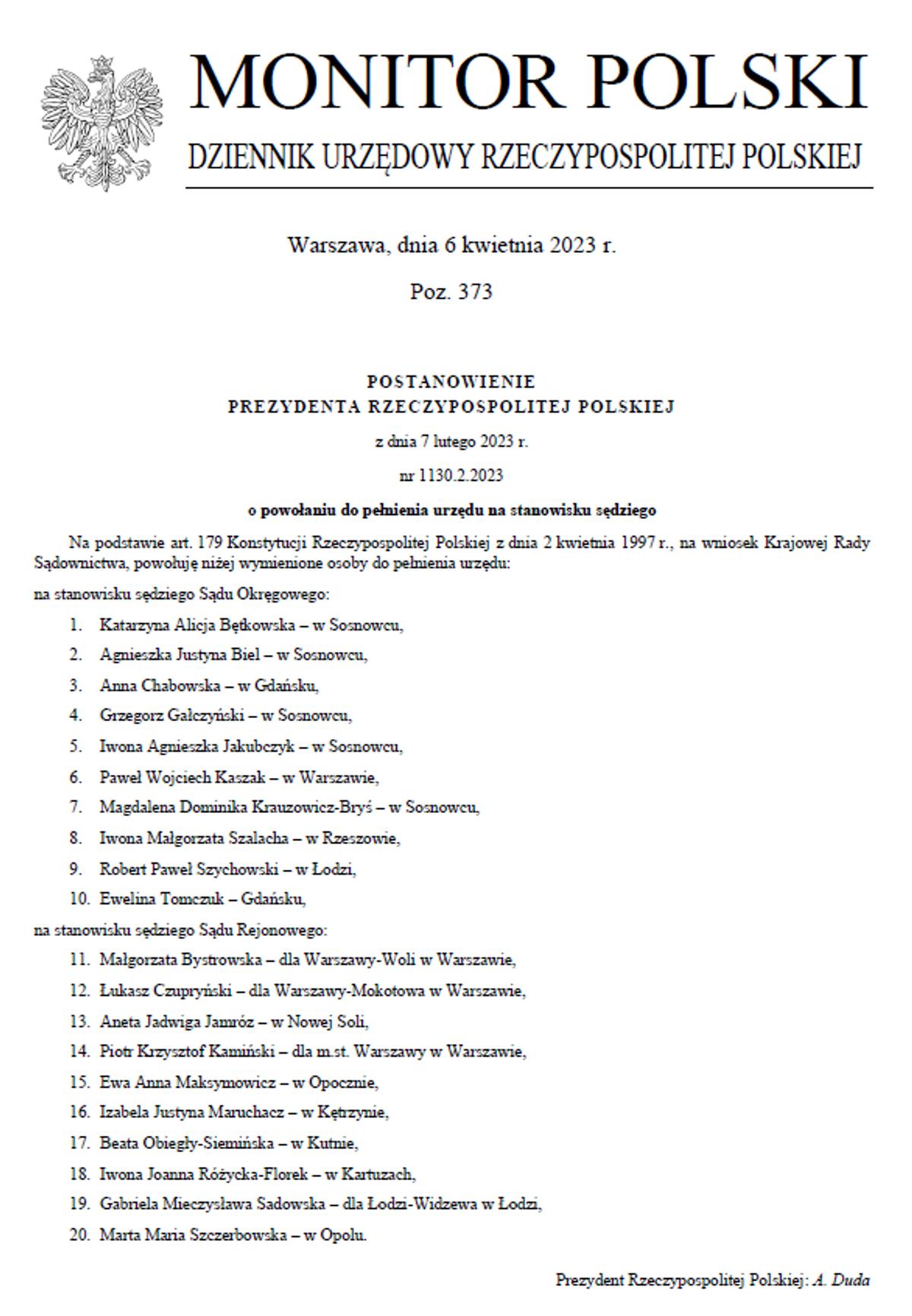 Złożyła podpis na liście: Ewa Krystyna Łąpińska (2022) .
