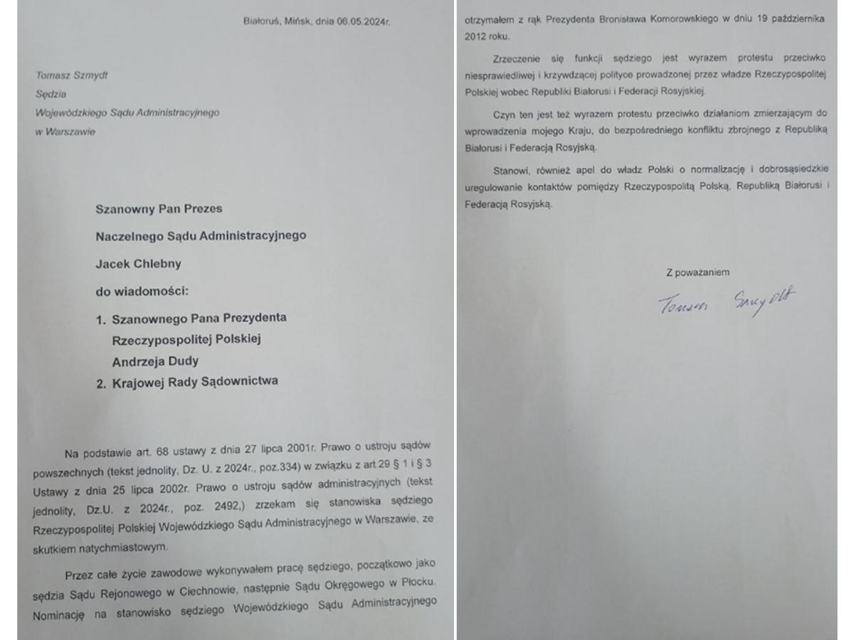 w maju 2024 r. poprosił o ochronę białoruskie władze.